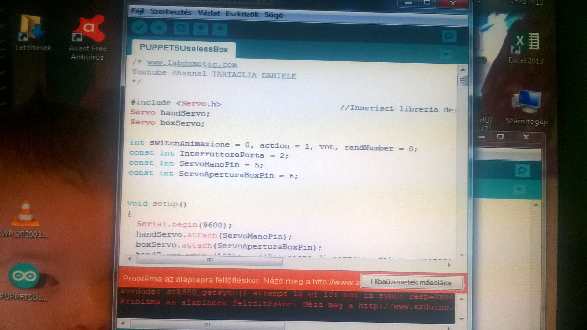 Sziasztok Felakartam tölteni ezt a kis programot,de nem sikerült mi lehet a hiba .Nem értek az arduino hoz csak fel tudom tölteni a programokat ,de ez sajnos nem sikerült.Köszönöm a segítséget.