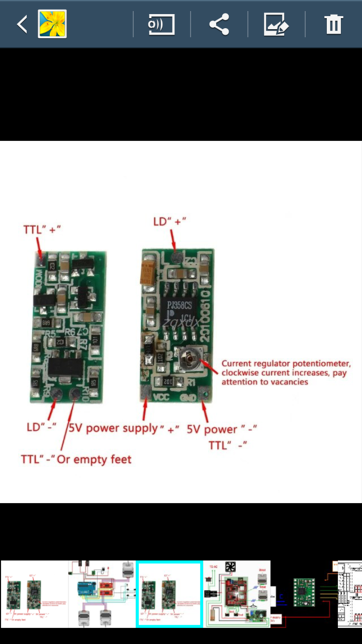 Sziasztok!Megépítettem egy lézer gravirozót dvd alkatrészekből.A lézert egy relémodul kapcsolgatja.Van egy nyákom ami 5voltrol hajtja a lézert.Van rajta ttl vezérlést lehetővé tevő bekotés is .A kérdésem az lenne,hogy a mellékelt ábrán levő ttl meghajtó helyére ráköthetem e a shield ttl tűskélyére?A kis nyák az általam használt meghajtó.Köszönöm a válaszokat.