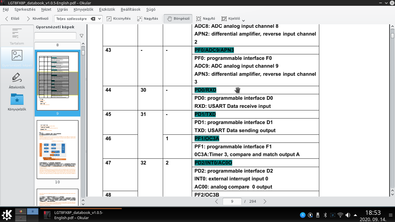 Találtam LGT8F328P kispaneleket, játszom vele, 99% M328 kompatibilis. Valaki ezekkel dolgozott? Arduino kompatibilis (elméletileg), de csak annyi infót kaptam, hogy vannak gondok...de hogy mi az, az hadititok... Eddig nekem tetszik, 32MHz, DAC, több Timer stb. Valamiért Timer3-at nem tudom kezelni (na, jó, ASMben igen). Valakinek tapasztalata vele?
