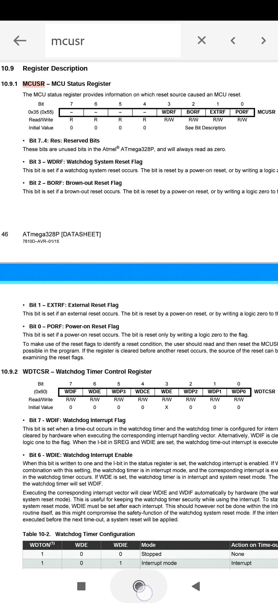 A setupba beletettem a " WatchDog::init(WACHD, OVF_4000MS);" utasítást,ez 4sec múlva meghívja a benne lévő függvényt.Ebben a függvényben van egy led jelzés,ezt meg is hívja,ha letelik a 4 sec,de a programon nem látni változást megy tovább.Vajon csak az AVR-t állítja alaphelyzetbe?Viszont a függvénybe beleraktam egy szoftver resetet is ami fizikailag a nanot reseteli,így láthatóan valóban újra kezdi a programot,csak a hosszabb ciklusokba kellett beletenni watchdog resetet.Ez nekem így megfelel,csak szeretném tudni a szoft reset nélkül is működik-e watchdog?