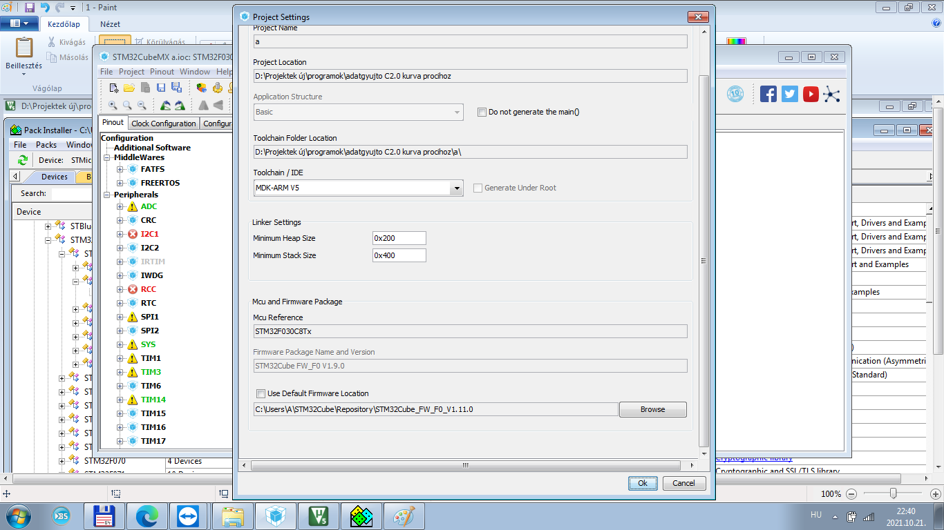 Segítséget szeretnék kérni mert teljesen feje tetejére állt a fejlesztő környezetem és nem tudom mi a baj. STM32F030 8C procihoz generálnék kódot. Cube MX telepítve a legújabb. (korábban is ez volt működött. FW F030 v1.11.0 van telepítve. Keil v5 erre pedig a 2.1 es driver A képen látható hibát dobja ki: a\a.sct(7): error: L6236E: No section matches selector - no section to be FIRST/LAST. Van esetleg ötletetek h egy miért van? A hozzászólás módosítva: Okt 21, 2021