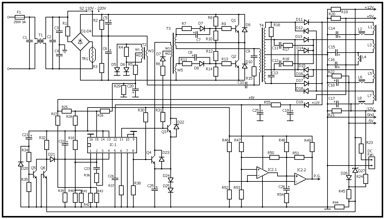 -Nem tudom jobban elmagyarázni, mert nem tudom, hogy a Te tápodnál hogyan van ez épp megoldva. De itt van két rajz, ehhez hasonló lesz. Rajzold le a te tápodat, egy alkatrészoldali fotóból nem könnyű dolgozni...
