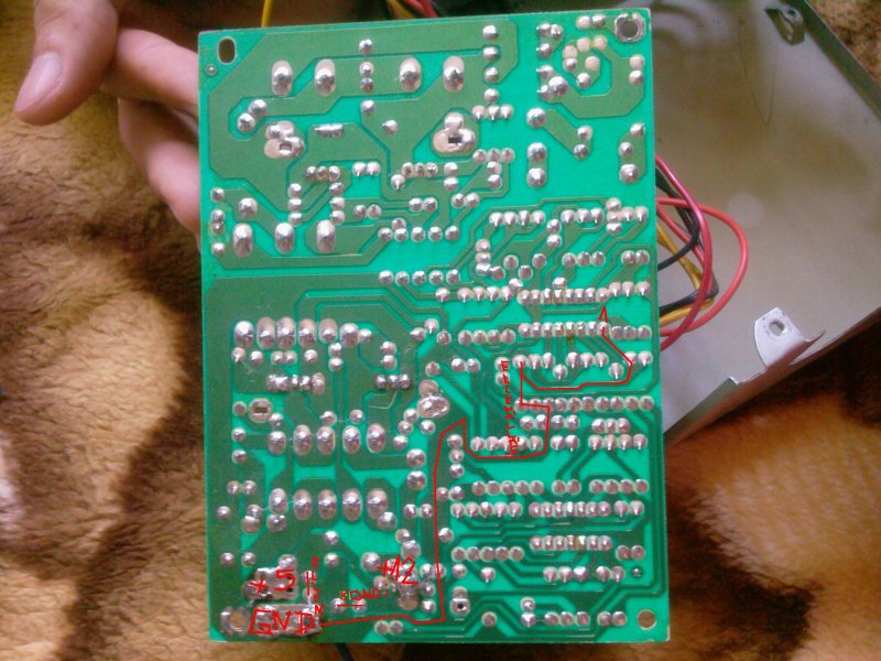 Lefényképeztem a nyákot hátha segít valamit és bejelöltem az IC 1. lábát és a feszültségeket pirossal.