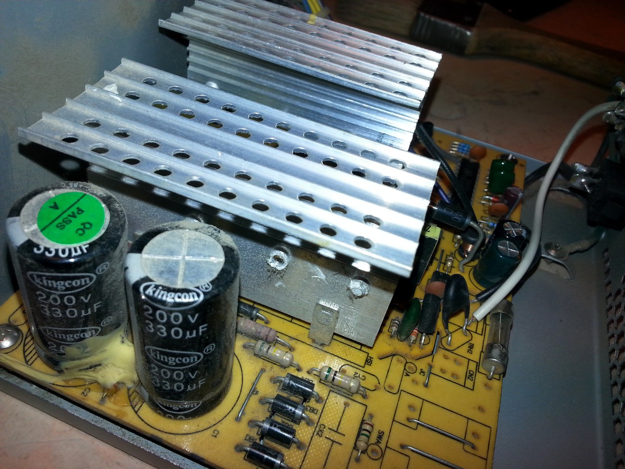 Nos, ezeket a képeket tudtam készíteni. Most látom, hogy figyelmetlen voltam, és az egyik puferkondi 200V 330µF amelyiknek a tetején van egy zöld qcpass matrica, púpos. Ezt kicserélem és meglátom hogy hogyan tovább.
