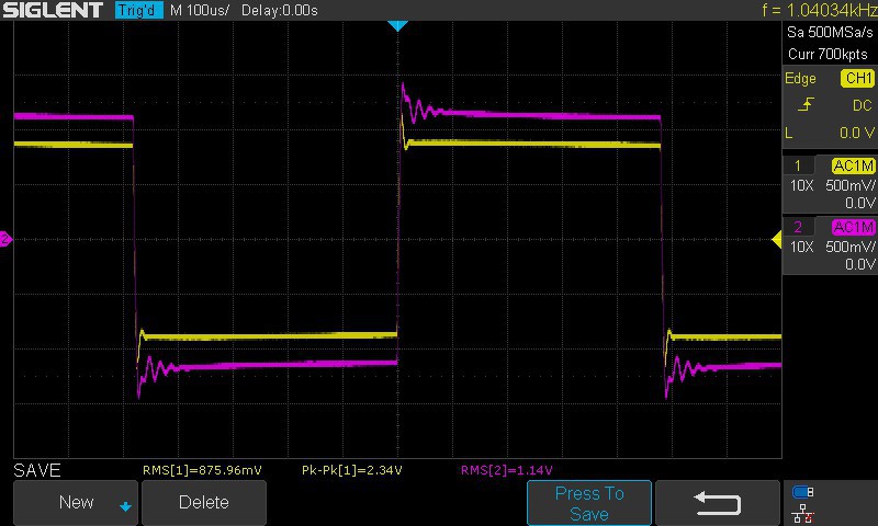 A méréseiden nem tudni, hogy mennyi az impedancia az egyik és a másik végen. Nekem van erre egy ilyen kis túllövéses néccögjelem (sárga), ezzel szoktam megküldeni kábeleket vagy erősítők bemenetét, és nézem, hogy az a túllövés vajon hogyan jelenek meg a másik oldalon. Vacak kábel végén úgy mint a lila jel. Meg vacak erősítő végén is, sőt néha azt még jobban be is lengeti.