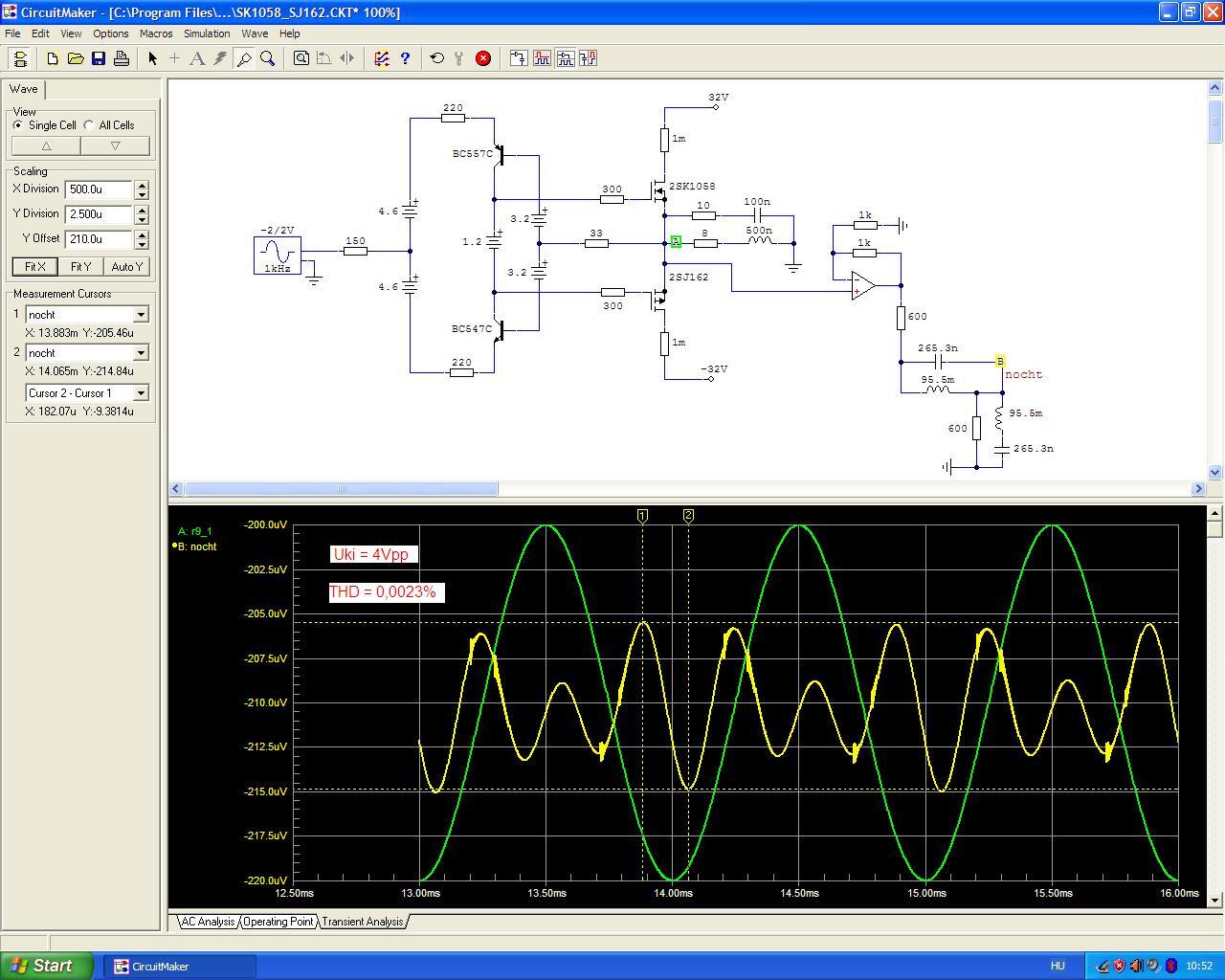 A FET-es erősítőddel Te is rengeteget foglalkoztál, hogy ne csak szép legyen, meg spéci alkatrészekből épüljön, hanem pl. a torzítása is viszonylag kicsi legyen. Ebben is sokat segíthet egy jó modellre épülő szimuláció.