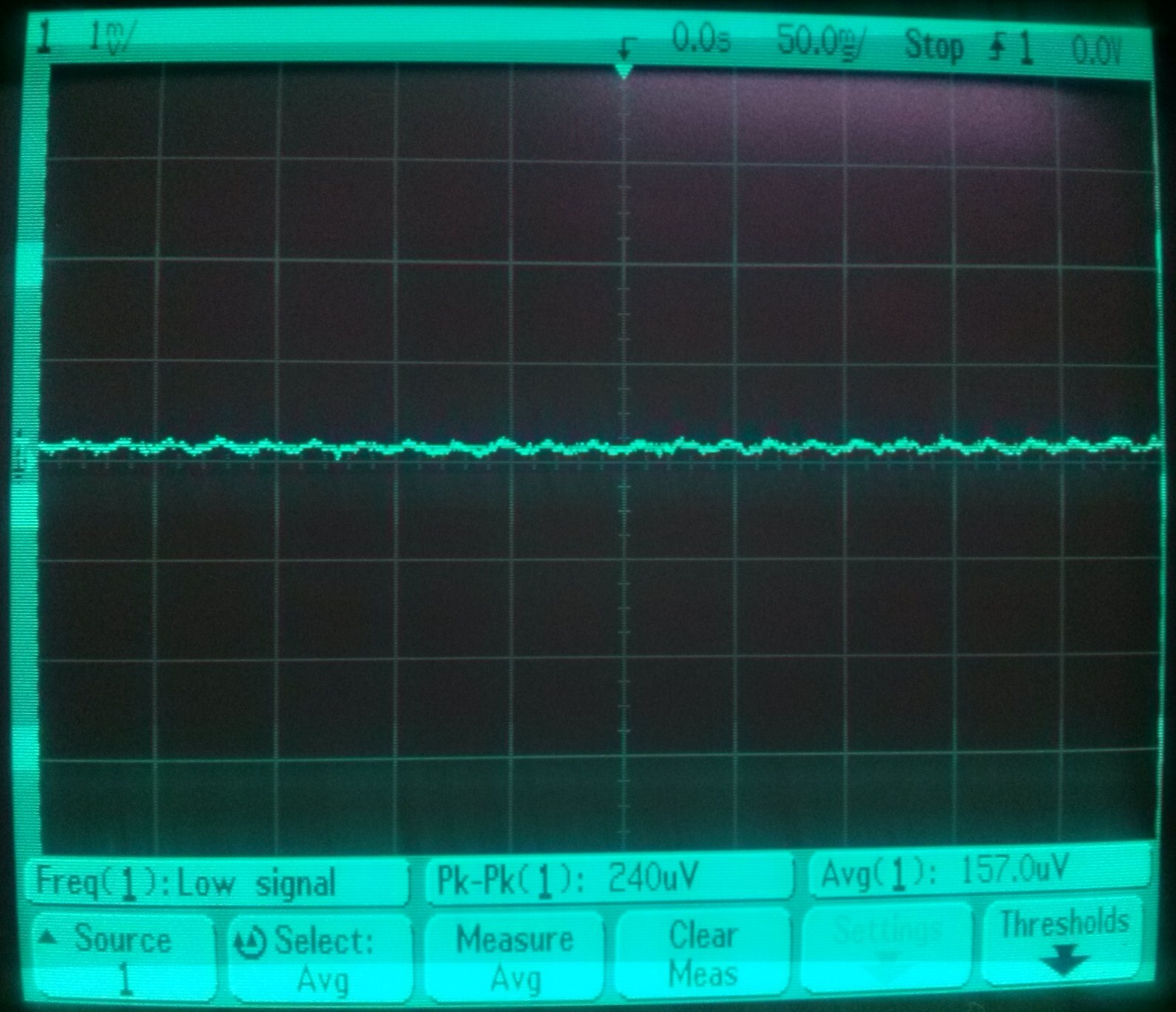 Brahiból megnéztem mekkora a kimeneten a zaj és a drift. Nem kell szégyenkeznie szerintem (a szkóp DC-ben van). Nem mászik el az offset (csak 5 percig néztem kb.). Súlyozottan ez a zaj 40-60 uV körül lenne.