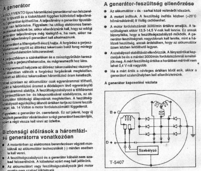 Sajnos nem akar tölteni ez a generátor. Furcsa hiba jelenségek voltak ezt megelőzően. Gyújtás ráadásakor (nem indítózáskor) elkezdett a kormányszervó motorja felpörögni mint egy porszívó olyan hangja volt. Ez úgy szűnt meg, hogy beindítottam és mentem vele az utcában egy néhány száz métert "forszírozott" tempóban. Ezután érdekes módon a szervómotor már nem pörög fel ha ráadom a gyújtást. Viszont a töltésjelző lámpa gyorsan villog járó motornál is. Mértem az akku csatlakozóján feszültséget, de nem mutat töltést megemelt fordulatnál sem. Végig vizsgáltam a vezetékeket, ott látszólag nincs hiba, így kivettem a generátort. Itt tartok most. Csak küszködök ezekkel az öreg sz.rokkal.. Üdv kedves Vim, kicsit pihenj is, ne mindig dolgozz!!!