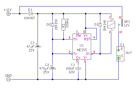 Hello! Én megrajzoltam, de gondold át, hogy így célszerű-e hogy a relé két perc után húzva marad. Mert így a relének nem a záró, hanem a bontó érintkezőjét kel használni. (A két perc az 555-nek kb. a maximuma amit még illik vele késleltetni.) A relé tekercsének áramfelvétele maximum 100mA lehet. üdv!