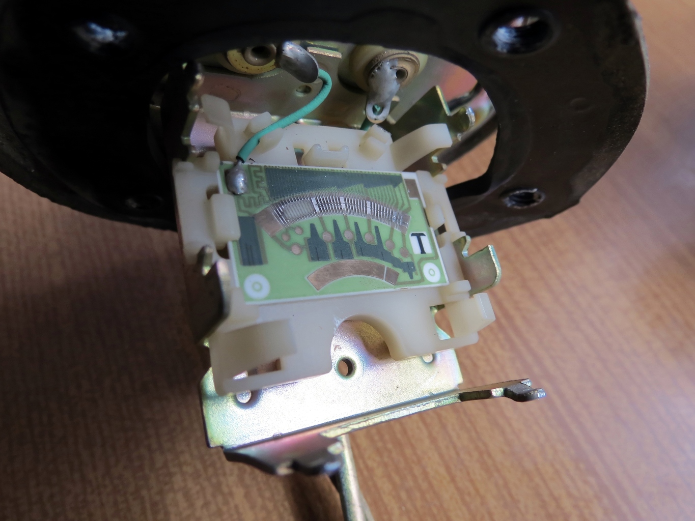 Adott egy ilyen üzemanyag jeladó, ellenállás elven működik, és a benzintankban van. A képen látható, hogy mi a baja. Kérdés: Ha megtervezem, nyákra smd ellenállásokkal, akkor (gondolom) működhet? Illetve berobbanhat tőle a benya?