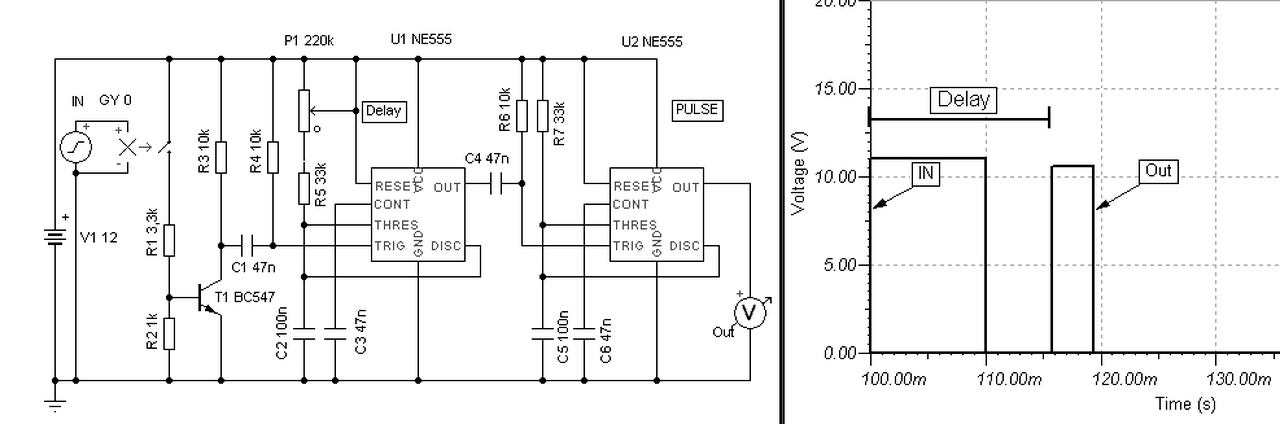 Hello! Ezt az 50..500ms késleltetési problémát megoldani 555-el nem gond. De azt, hogy "csak azután kapcsol be majd egyből ki", azt nem lehet értelmezni.