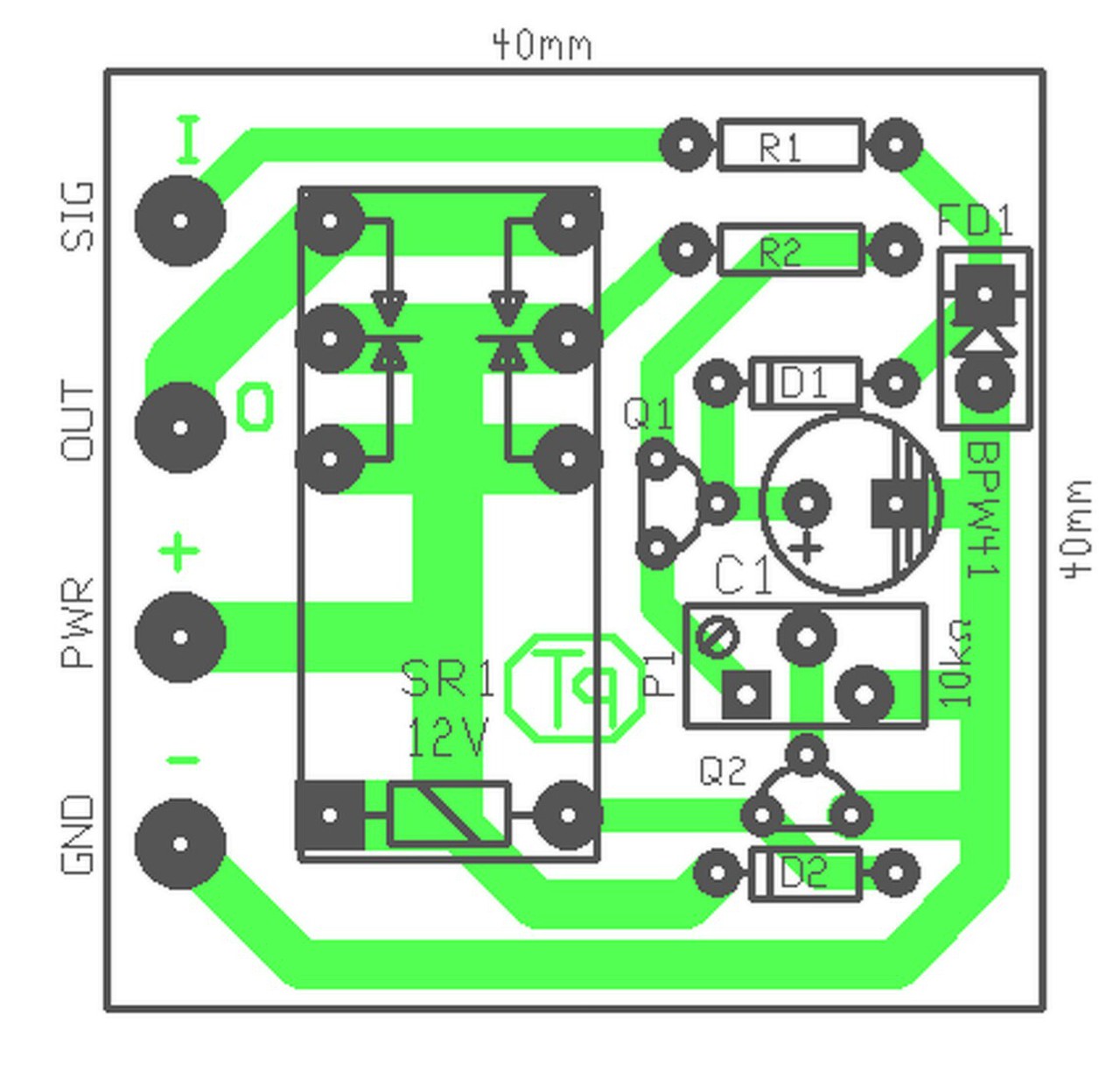 Valami gubanc van, mert mindegy ,hogy van benne foto dióda vagy sem. Röviden: megépítettem és teszteltem ,majd utána kérdezetm a foto diódáról. Szóval kivettem a dobozból és úgy is ugyan úgy kapcsol majd kivettem a BPW t és úgyan úgy működik tovább. Beleraktam a L-53 P3C at és ott sem történt válltozás. A kimenetre kötöttem egy ledet és ha a signalt hozzáérintem a +12v hoz egy pillanatr akkor kattan a relé a 10k pot. al beállítottam ,hogy 30mp. ig világítson. Mi lehet a probléma?