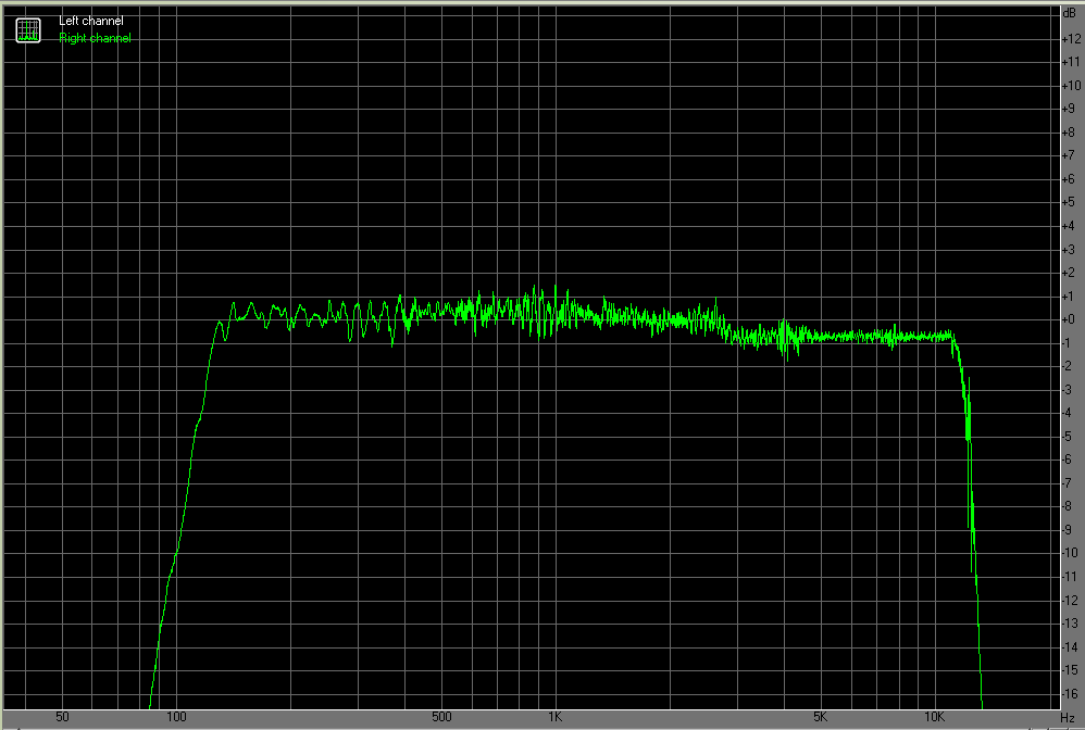 Az eredmény lentebb látható. Mehetne magasabbra, bár az én bot fülemnek nemigen hiányzik az a tartomány. Egy ~800 forintos hangszórótól szerintem egészen elfogadható, enyhítő körülmény hogy távolkeleti márka, és doboza műanyag. Az előlap méretét megtartom, úgyfest valami véletlen folytán eltalálták. EQ nélkül nem merem lemérni, sanszos hogy a sírás kerülgetne. Így viszont tűrhető. Na nem egy audiofil berendezés, dehát nemis arra készült.. Kiváncsiságból le fogom mérni egy "szokásos" kínai kocka frekvencia menetét is, kiváncsi vagyok a különbségre. EQ-t ahhoz is igazítani fogom, meg majd belinkelem a winamp plugint amit használok EQ gyanánt.