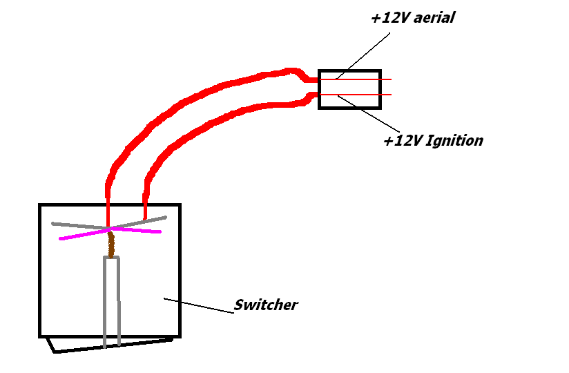 Vagy kötheted a rádió és az antenna közé (úgy, hogy elvágod azt a vezetéket), így a rádió kapcsolja, de kézzel ki tudod kapcsolni, ha akarod. |