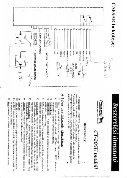 Caesar CT-210U típusú Autóriasztóhoz szükségem lenne bekötési rajzra. Szervízben építették be. 5 évig jól működött... Most nem hogy indításgátlóként funkcionál hanem pont ellenkezőleg. Nem lehet az autót leállítani. Gyújtás le kulcs ki és az autó tovább ketyeg. csak ha kinyitod a vezető oldali ajtót akkor áll le a motor. Nem vicc. (Lásd videó). Azt gyanítom hogy a riasztó vagy a benne lévő relé adta meg magát. Ha valakinek van esetleg rajza hozzá vagy volt hasonló tapasztalata kérem ossza meg velem. Köszönöm.