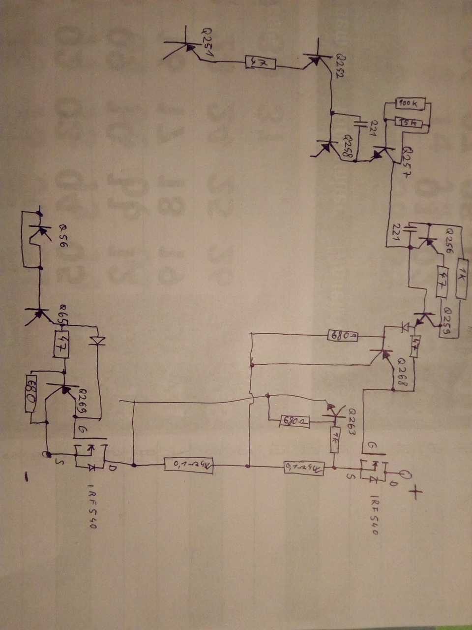 A végfokot meghajtó fokozat jár -+37V-ról, a meghajtók tápfesze rá van ültetve a végfok tápfeszére (a kondenzátorok sorosan kötve) ennek a kondenzátora 25V-s feszültségtűrésű (csak 10V van rajtuk). Ha Mlaci méréseit veszem alapul még mindíg hiányzik 5-10V a szekunder oldalon. Ellenőrizem a szekunder tápfeszek AC komponens mértékét, de elenyésző, a kondenzátor hibát kizárnám.