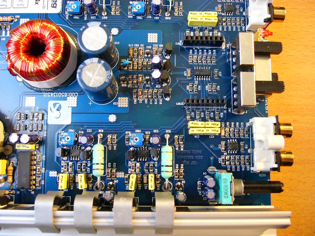 A tuninggal kiszélesítettem az átvitelt. Jobb lett a mély tartomány (csatoló kondik cseréjétől), Na meg a teteje is jobb lett. 110KHz-ig tökéletes az átvitele. ![]() Itt egy pár kép az eredeti állapotról: