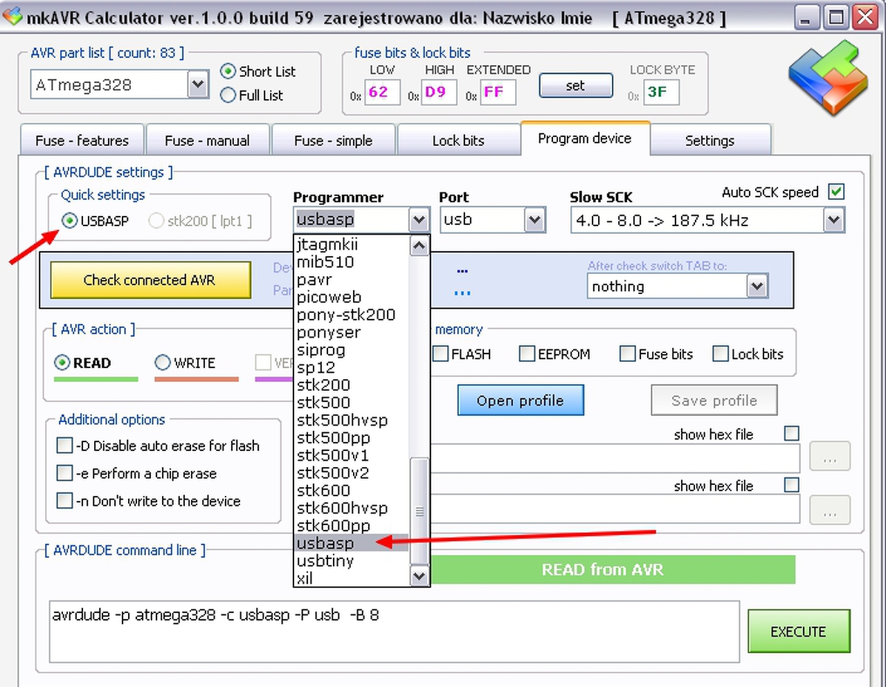 Érdemes azeXtreme+Burner+-+AVR-t kipróbálni, vagy a Khazama égetőt. Mindkettő USBasp-s