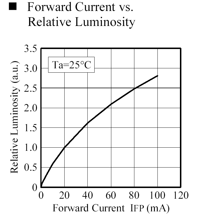 Szoval, amikor meg kell hajtani egy 32x32 RGB matrixot (3072 LED), aminek a PWM frekije kb. 200Hz, es azon belul 12 bites PWM van, akkor mindjart kijon az, hogy 1.21us egy PWM idoszelet. Namarmost, ha ennyi ido alatt 32x3 LED-nyi adatot kell kitolni a shiftekbe, akkor az baratok kozott is 78MHz shift clock-ot igenyel. Ezert ugy dontottem, hogy nem 96 bites shiftek lesznek, hanem csak 48 bitesek. Azokat mar meg tudom hajtani 40 MHz orajellel. Persze egyszerre 64-et, mivel oszloponkent ket 48 bites shift van. Tehat 64 adatkimenete van az FPGA-mnak, valamint egy 40MHz clock, meg strobe jelek. Namost, ha ez meg multiplexelve is lenne, akkor igaz, hogy ugyanehhez csak 2 adatjel lenne, viszont harmincketszer ekkora orajel kellene a shifteknek. Igaz, meg lehetne csinalni az egeszet parhuzamos regiszterekkel is, multpiplexelve, ez teny. Es orajelben is eleg lenne ugyanez. De ideteszek egy adatlapbol kivagott grafikont, amibol kiderul, nem minden LED-et lehet nagy aramokkal hajtani. Ezt a LED-et kifejezetten video falakhoz terveztek, igen draga. Barco tablakban is ez van, szoval nem gagyi cucc. Otszoros aram mellett kevesebb, mint haromszoros a fenyereje. Es nagyobb aramra nem is adjak meg, tehat a 1:32
