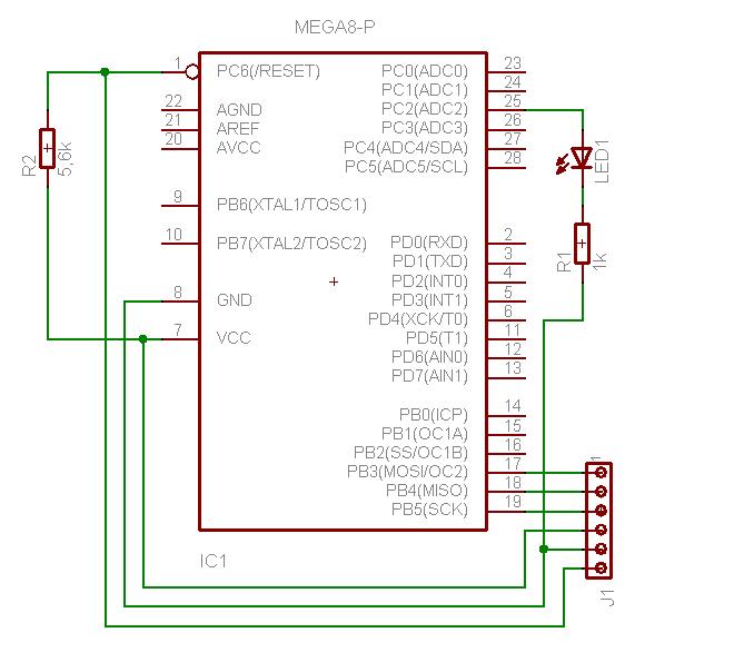 Készítettem egy egyszerű bekötést ATmega8 - al. Egy LED dióda van bekötve valamelyik portra (kép) aminek villognia kéne, de valahogyan nem teszi ezt. Belső oszcillátort használok, ezt remélem jól állítottam be a fuse bitekben (kép). Kommunikáció az AVR és a PC között működik, az AVR is működőképes. Szerintetek mi lehet a gond? Idézet: „valamelyik portra” De arra a portra amit vezérelsz ? Fuse bitek jók !
