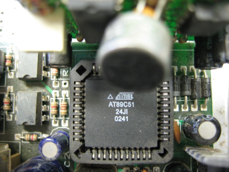 Sziasztok.Ezt a topicot ajánlották,talán tudtok segíteni nekem.Egy diszkós robotlámpával lenne egy kis gondom.A baj az,hogy nem áll le a program a prociban szerintem.Bekapcsoláskor az előtt néhány másodperc után leállt készenlétre,most viszont folyamatosan világít az ütem jelző led,és folyamatosan forog az egyik motor is ezért. Ez egy hangra reagáló vezérlés,két motort működtet.A 12V,és 5V-os stab. ic-k jók,kivettem a mikrofonos panelt,így sem áll le.A procit kivettem,persze így már leáll.Lehet az,hogy a proci a hibás?És ezt lehetne újra programozni valamilyen módon?Vagy megnézni,hogy mi a jelenlegi tartalom?Ebben kérnék segítséget.Hozzá kell tennem,hogy a programozáshoz sügér vagyok,tehát ha valaki segítene ebben az jó lenne.Persze nem kívánom ingyen.Köszönöm előre is a válaszokat! A proci típusa: Atmel AT 89C51 Képeket mellékeltem.