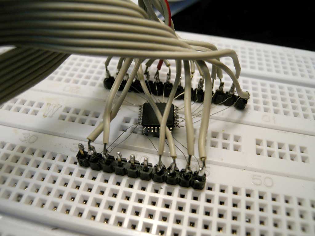 Én inkább megpróbálnám benn a panelben rákötögetni, mert akkor csak a kvarckristályt kell kiforrasztani és az FTDI-t lekötni. Ugye azzal hogy kiforrasztod, még nem vagy kész, rá is kell kötögetni a 20 szálat... Ha benne hagyod a csipet, akkor a kimeneti portokra egyből rámehet a szabványos HVPP kimenet: A "DATA" a PORTB-re és a PORTC1:0-ra, a "CONTROL" a PORTD-re. A BSEL2 a PORTC.2-re, a RESET és az XTAL1 szerintem egyértelmű...