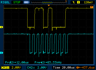 Igen, ez a tanulság nagyon hasznos. Főleg annak fényében, hogy az adatlap azt írja, hogy a Vbat lábat földeljem ha nincs rá szükség . Természetesen földelve volt. No sebaj. Lényeg, hogy működik. Majd elképzelhető, hogy berakok egy kis delay -t a start és az első bit küldés közé. Bár így is működik.