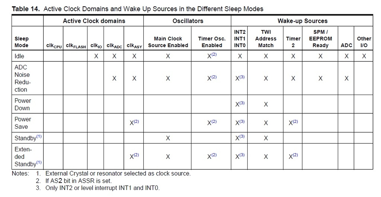 Mit jelent a 3. megjegyzés pontosan az ATmega16 doksijába? Azt tudom hogy ezen a mikrovezérlőn nincs INT2-es bemenet csak 1 és 0. Külső kavicsról megy az órajel, minden alvó módból fel tudom ébreszteni külső megszakítássa? |