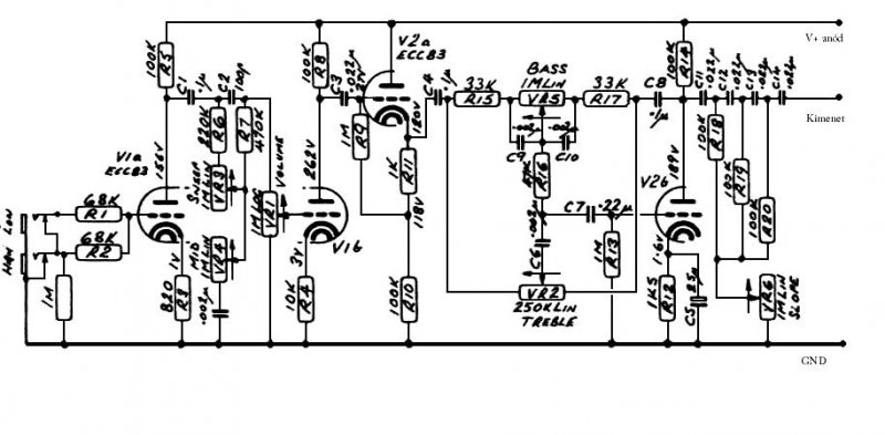 Szerintem csinálj valami rendes előfokot. Anno kíváncsiságból én is megépítettem, először az eredetit, aztán saját nyákon is, de nem tartottam érdemesnek a további használatra. A csöves hangzásvilághoz pedig semmi köze sincs a cuccnak, karakterisztika ide vagy oda. Ha kell jó csöves előfok, azt tudok adni. A kombómba is olyan van, tavaly terveztem a Marshall JCM-800 Bass kapcsolásából kiindulva. Bevált dologról van szó, van róla rendes LAY, már három példány készült belőle és eddig mindenki dicsérte. Ne kínlódj ezzel a Kreuzerrel, nem ér annyit.