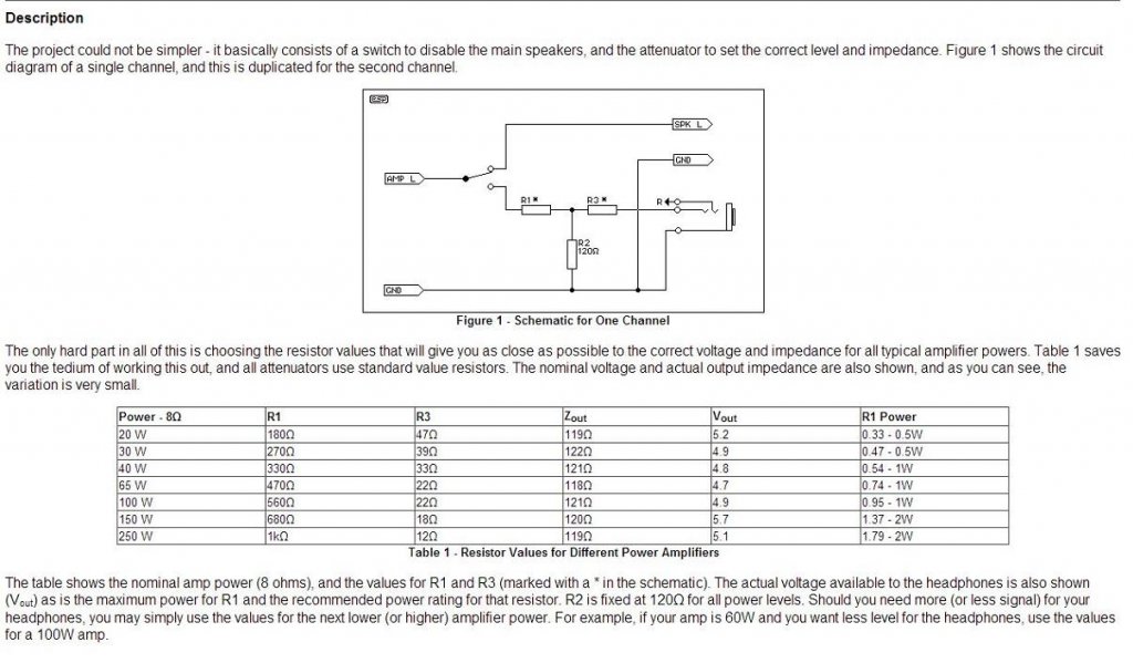 Nem szószerint kell leosztani, elég bele egy soros áramkorlátozó ellenállás. Nézd meg pl a Behringer BX 1200-ban, nem sokat tököltek, simán ráküldték a végfok (2db párhuzamos LM 3886) kimenetét a PHONES csatira és annak a testjét vezették le 270 Ohm-mal, az erősítő testjére.