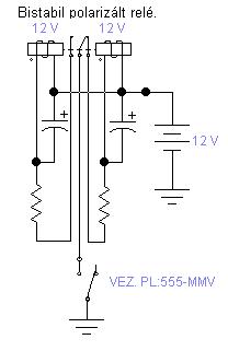 A probléma az lehet hogy a reléd bistabil állapotból astabil állapotba kerül a kontakt pontok visszacsatolása, és az állandó vezérlő jel miatt. Talán mérsékelhető az oszcilláló hatás, a tekercsekkel sorba kötött ellenállásokkal és a tekercsekkel párhuzamosan kötött kondenzátorokkal. De Állandó vezérlő jel hatására akkor is rezegni fog. Csak sokkal kisebb rezgésszámmal. Ha a vezérlő jel intervalluma kisebb a (relés) oszcillátor frekvenciájánál (periódus idejénél), akkor viszont stabilnak mondható a kapcsolás. PL: Ha az átváltáshoz egy másodperc kell, akkor a vezérlőjelnek egy és két másodperc közé kell esni! Kevesebb idejű vezérlő jel nem billenti át a reléket. Hosszabb idejű vezérlő jel meg visszabillenti. De egy élindításos időzítővel (555) pontosan belőhető az időzítés. S mivel ÉL-vezérelt, ezért a vezérlő jel hossza nem befolyásolja a kimenet időzítését. Élindításos időzítő alkalmazásával a kapcsolási idők is jelentősen lerövidíthetők...
