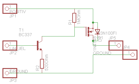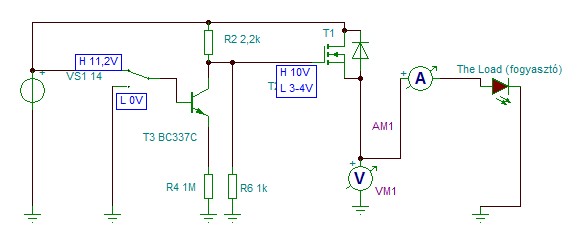 P típusú FET-et használj, úgy, hogy az S van a pozitív tápon, és a D a kimeneten. R6 ekkor nem kell, R4 helyét zárd rövidre, és a tranzisztor bázisával sorba tégy egy pár k-s ellenállást!