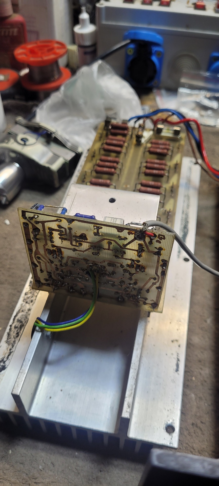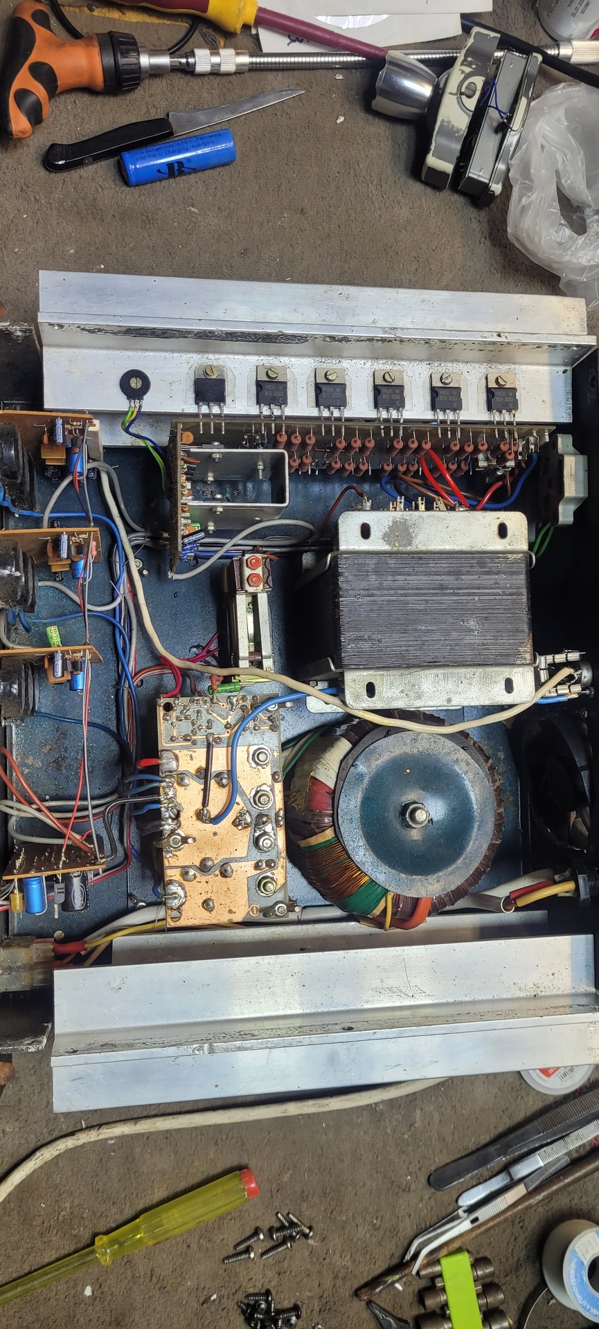 Nekem nem az orion jut eszembe róla... viszont lehet a kapcsolása ugyan az.... 2x50V a tápfesz... nekem a tranzisztoronkénti 3db 1ohm párhuzamba kötött ellenállása miatt jutott eszembe a Beag, illetve a TK222 illesztó miatt... A másik amit észrevettem, hogy egy pár BD249C-250C hajtja a többi BD249C-BD250C-t.
