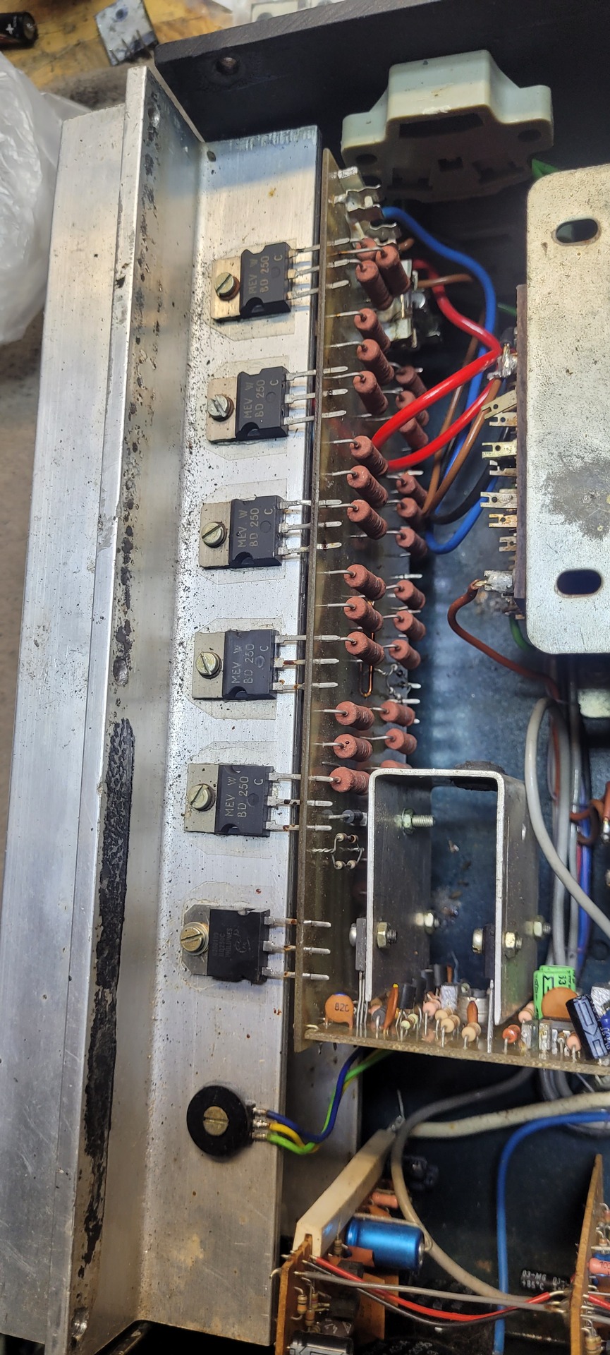 Ezen a gépen csak a fogantyú és a forgatógombok BEAG...A végfoka a nagy Orion torony végfoka,vagy az eredeti panel,vagy a koppintása,...létezett 1,vagy kettő végfokkal,de nem sztereo...1-szer,vagy 2-szer 100-150 W ..6-6 db BD van benne...a bemenet sima tranzisztoros erősítő,hangszínnel kombinálva...a kivezérlés jelző UAA Ic...egyszerü,de strapabíró felépítés jellemzi.