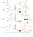 A fentebb emlitett módositások után elkészitettem a kapcsolási rajzot. A tranzisztorok bázisával sorosan beiktattam egy 3,9V-os zenert, plusz ahova szükséges volt beiktattam az ellenállásokat. Ránéznétek hogy jó-e, illetve hogy elméleti sikon ellátja-e a funkcióját?