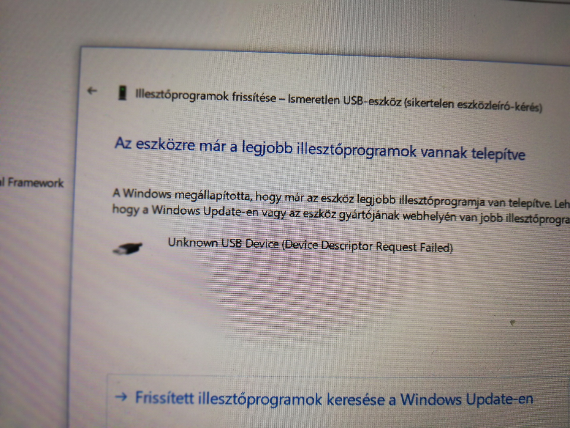 Én elsőként azzal próbálkoznék, hogy letörölném az illesztőt, amit a windows talált és manuálisan próbálnék telepíteni egy hozzá valót. A Windows Update-tel már jártam úgy, hogy egy eszközhöz rossz drivert rakott fel.