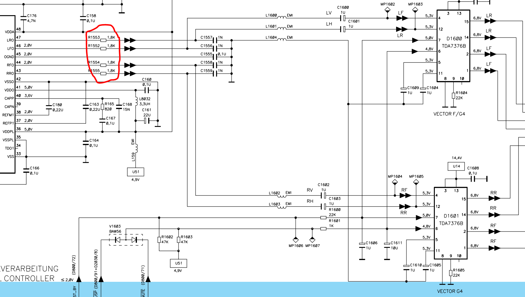 Előhalásztam a polcomról annó félretett Blaupunkt MP36 fejegységet. Méregettem benne kicsit, de nem nagyon lettem okosabb. Hibája az hogy a végfok némítását szolgáló tranyóra kerülő feszültség lekapcsol, azaz a fő IC félig magához tér, ezáltal a CD olvasó is elkezd néha félműködésbe lépni. Kikapcsolást követően 5 másodperc után jön elő a tünet. Megszűntetni több féle képpen lehet, előlap levesz/ha lent van visszarak, pillanatnyi gyújtás jelre szintén magához tér. Ha úgy hagyom akkor a végfok melegszik, továbbá autóban használhatatlan lenne hangszóró recsegése miatt. CD olvasó lekötve, nem segít. Előlapi panel összekötő mindegy hogy rajta van e vagy sem, a hiba marad. Merre induljak tovább? Üzem közbeni egyedüli probléma hoyg nem mindig némítja illetve a be/ki kapcsolást sem lehet kivitelezni, de ezt betudom a korának és az ellenállások megnyúlásának, ezek javítva lesznek. Szervízleírása neten fent van, ITT megtalálható. U14V-ot néztem, illetve U143-at is, de ezek rendben vannak. U143 feszültség a szabvány szerinti kék vezetékre, azaz antenna remote-ra érkezik. Itt mondjuk 0,5V maradék feszültség van, de szerintem ez lényegtelen kell hogy legyen. Tehát merre kellene tovább indulni? ![]() ![]() A segítséget megköszönném! ![]() Üdv McDeath