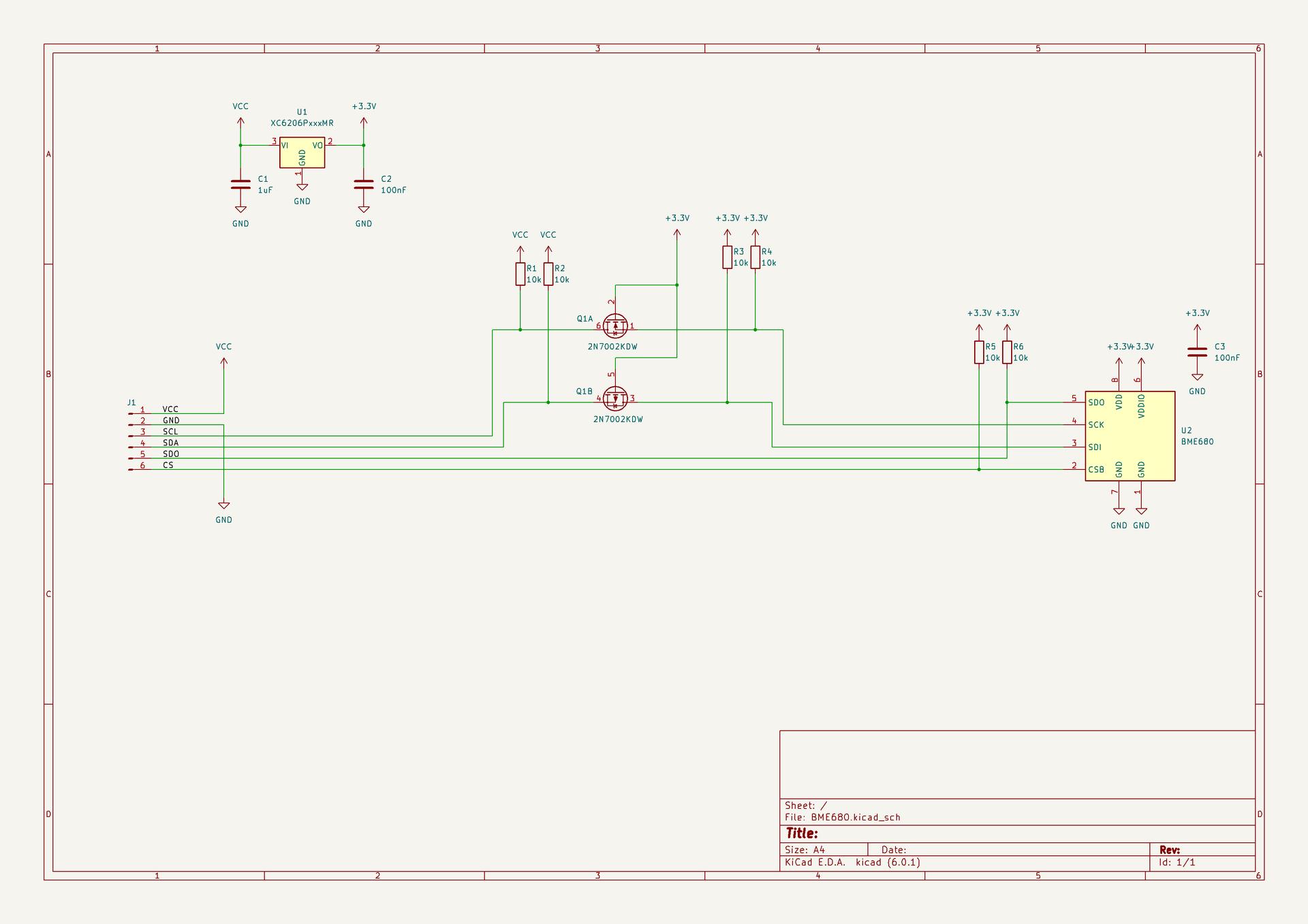 Sajnos ez a BME680 vacak ilyen horror árban van (bár nem vacak, mert elég érzékeny és pontos), a legolcsóbb megoldás tényleg a DS18B20-al való kiegészítés. A teszttel igyekszem, meg kell írnom még a szoftvert, egyelőre egy FT232H-s adapteren keresztül szeretnék vele beszélgetni PC-n. Addig is itt van a BME680-M HEStore-os modul kapcsolási rajza, hátha kell valakinek. A neten nem találtam, így visszarajzoltam.