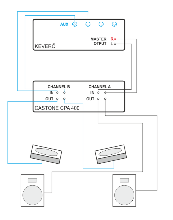 Az neked eddig nem tűnt fel, hogy az CPA400 egy sztereó, gyengébbek kedvéért 2x mono (csatornás) erősítő??