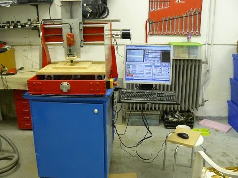 Nekem már 2 gépem is van. Az első tiszta vas, a fényképpel ellentétben egy 3~ motor van rajta főorsónak, frekvenciaváltóval hajtva. Ezen készült a Csfk_2, ami könnyű alumínium. Azon szoktam panelt marni és azon készült az előlap is.