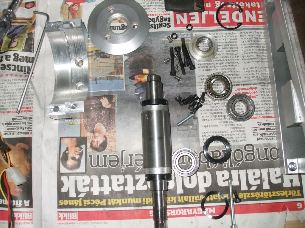 Maga a váz szerkezetén agyalok még, de nagyon úgy néz ki, hogy vastag falú zártszelvényből lesz. Teszek fel képet a főorsómról. Ez egy 1,5kw-osnak írt kínai vízhűtéses motor, ER11-es befogóval, nagyon jutányos áron jutottam hozzá. Viszont nagyon szépen, és csendbe fut a motor. Jövő héten elvileg megépítem hozzá a frekiváltót is.