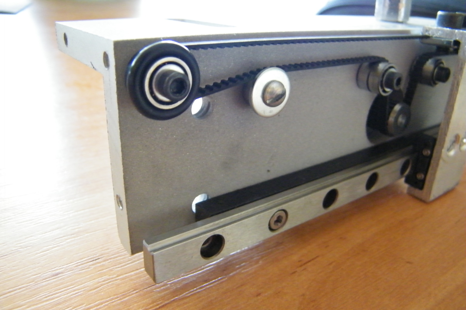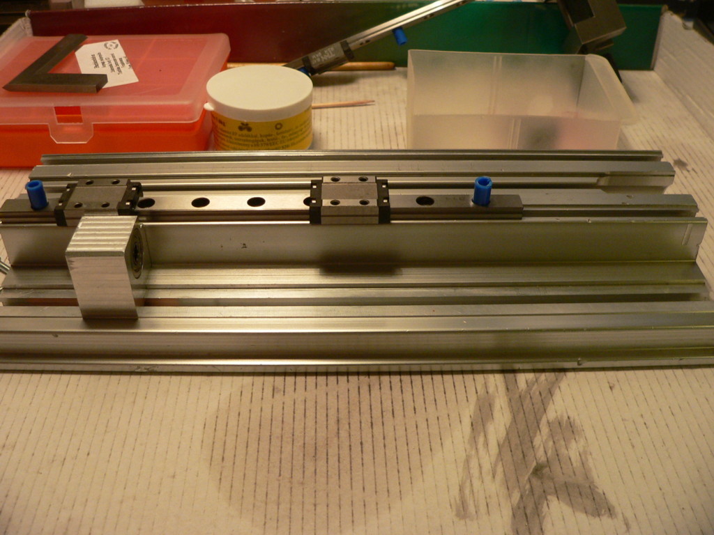 Az első próbálkozásaimnál 2x2 16-os tengelyen 8db SC16-os csapágy vitte az Y hidat. Már a próbák alatt elbukott! Rezonált és ha terheltem (kb. olyan súllyal mint a Z tengely és a szerelvényei) majdnem 1mm-t behajlott.