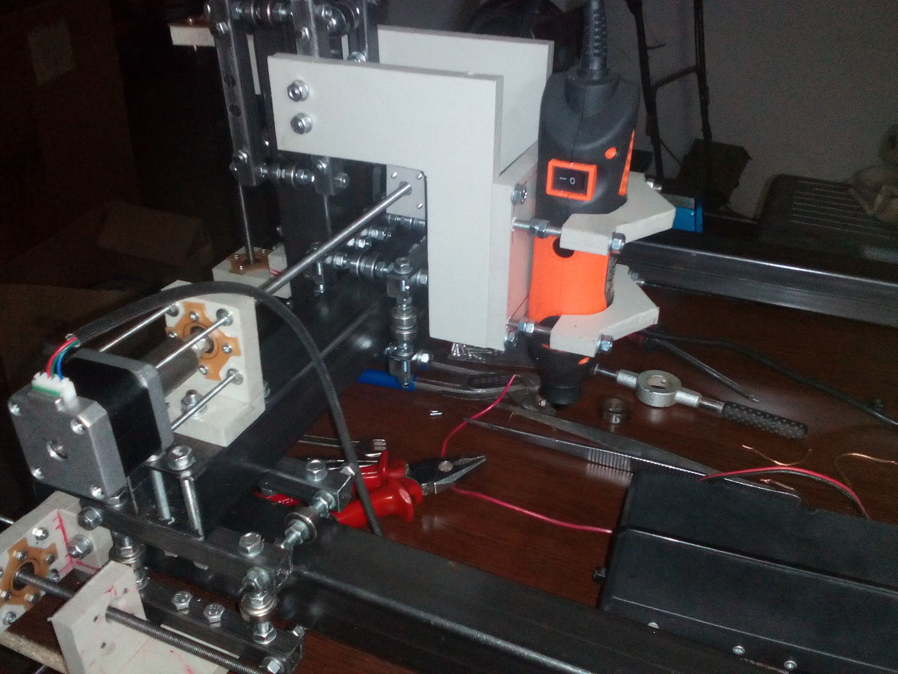 piros motor hajt direktben..Ezt az áttételes dologról tudnátok egy képet linkelni??Érdekelne továbbá , hogy miért is kellene ide ez az áttétel. 10 es kazánlemezbő van a hid és mechanika többi része is most megrajzolva..Azért ebből mert ilyet tudtam most szerezni..De utánanézek van e vastagabb... Marróból bosch GKF 600 as és egy Makita RT0700C áll pillanatnyilag rendelkezésemre,de attól tartok ezek nem igazán erre valók, én egy ER11 es tokmányos marrómotorra gondoltam kinából.. De ezek még nem lefixált dolgok elsőnek a mechanikát szeretném megoldani aztán jöhet majd vezérlés marromotor stb.. tehát akkor egy: x 500 y 600 z 150 As gépet javasolnál ?? Még motoszkál itt a fejemben egy olyan gondolat is hogy lehessen majd később egy 4. tengelyt is felszerelni egy kis eszterga tokmányt...És olyan mechanikát kell csináljak ami ezt lehetővé teszi..