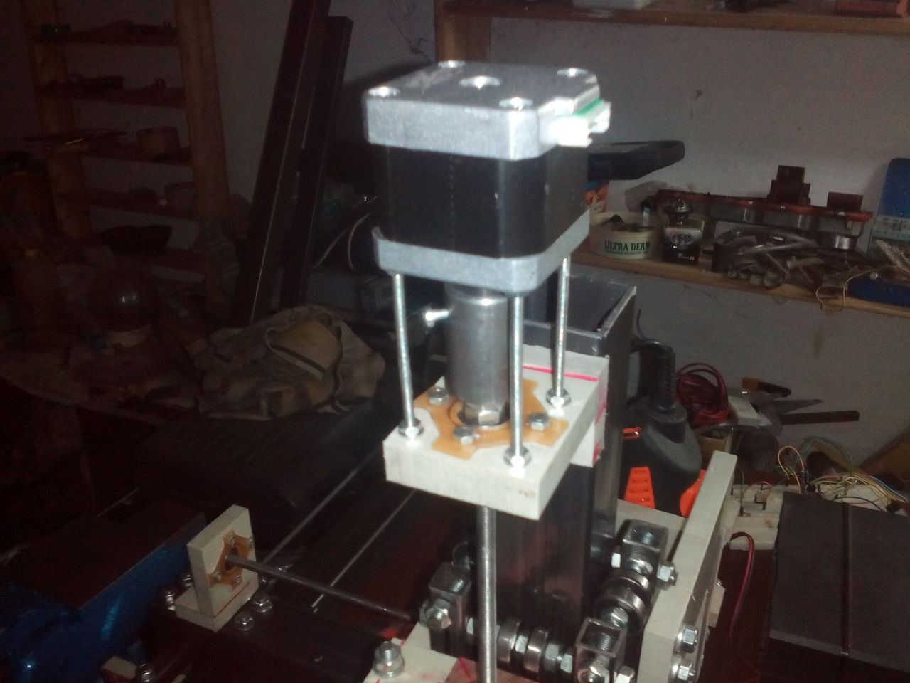 A bordás szíjat azért javaslom, mert lényegesen könnyebb műszaki megoldás az egytengelyűséget elérni. Ha direktben van összekötve akkor nagyon pontosan kell a motor tengelyét, és a golyós orsót egy forgástengelyre hozni ahhoz, hogy ne legyen excentrikus a forgás. Ha viszont a motoron egy bordáskerék van, és a golyós orsón is van egy bordáskerék, akkor lényegesen könnyebb az egytengelyűséget biztosítani. Már csak azért is, mivel csak a golyós orsót kell a két végén becsapágyazni. Az áttétel lehet akármennyi, még 1:1 is. A lényeg a műszaki probléma leegyszerűsítése. A másik dolog, hogy a szíj csillapít a motor rezonanciáján. Nekem lassító áttétel van, ami ugye dupla nyomatékot jelent. Nekem a nyomaték és az üzembiztonság fontosabb, mint a szuper sebesség. A negyedik tengelyen helyes gondolkodni. A vezérlőt úgy kell megépíteni, hogy eleve 4 tengelyes legyen. Aztán majd később épül hozzá egy forgató. A maró motort illetően legyen teljesítmény legalább 1kW. Az ER11 jó választás. Itt egy video link a gépemről. Itt jól látszik a bordás áttétel: VIDEO