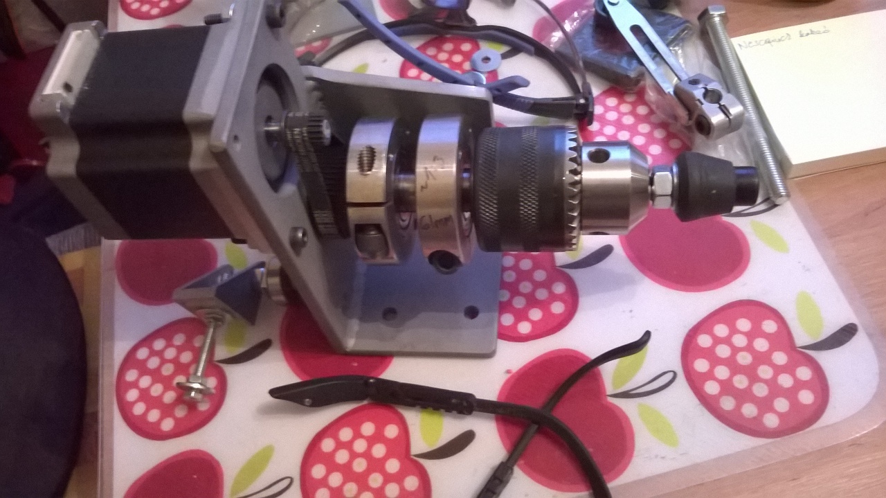 Próbaképp összeraktam egy egyszerű forgatót. Működött szépen, de módosítottam rajta itt ott. Sajnos még tokmányt nem tudtam szerezni, így a képeken látható módon rögzítettem a munkadarabot.
