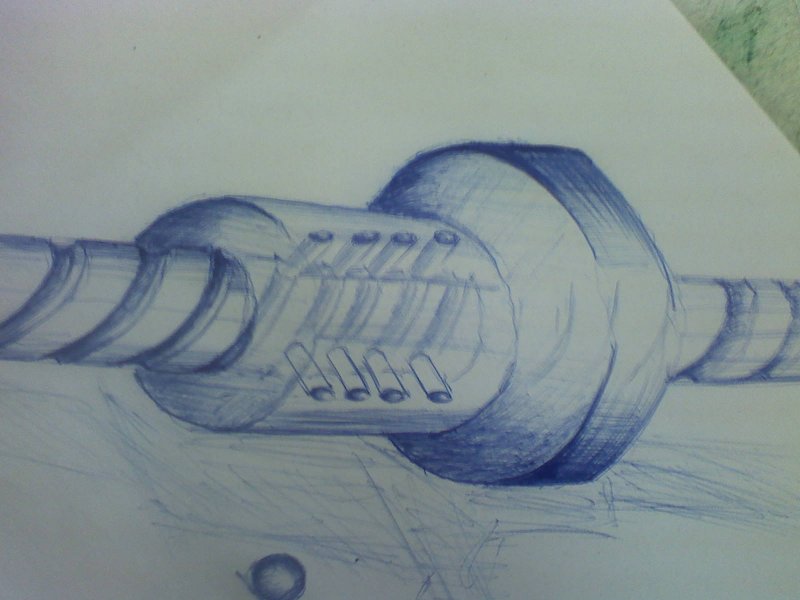A golyós anyával kapcsoltaban annyit hogy hasonlóan néz ki mint amit lerajzoltál csak az a kűlömbség hogy a golyók "áramlanak" a menetárokban. És ezt házilag nem igazán lehet kivitelezni. Az anya pedig azért kotyanásmentes mert nagy a menet emelkedése ami viszont azt a problémát veti fel hogy nem önzáró.