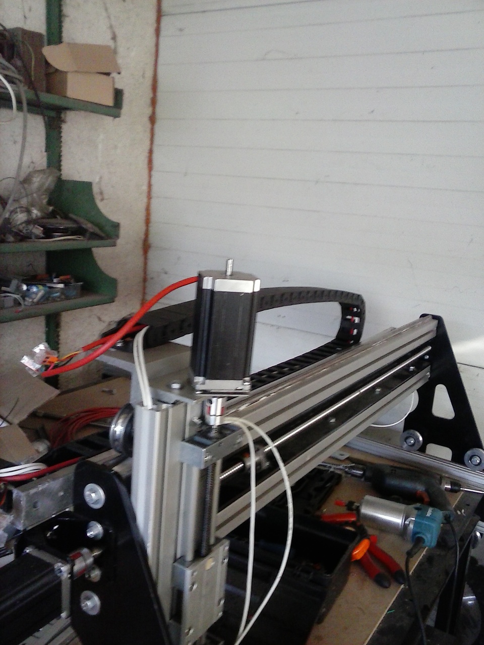 Még hosszabb is a kelleténél mindkét lánc csak kb a fele mozog a többi csak fekszik a vezetősínen , de nem akartam külön kábelcsatornában vinni a vezetékeket az energialáncig inkább azt hosszabbítottam meg