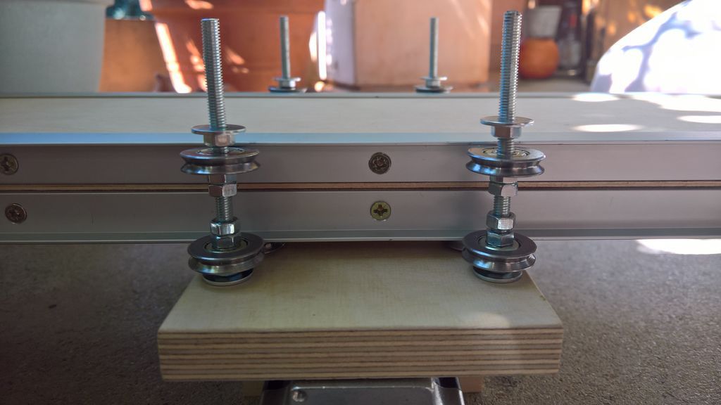 Meg leszek kövezve, de ha csak fa meg plexi akkor akár az alu "T" idom is jo a sineknek! nutos csapágy kerekeknek!