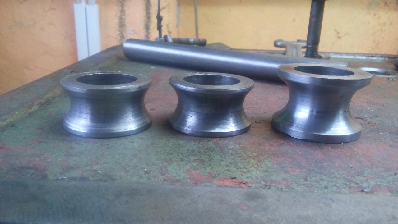 Igen a görgök csapágyazottak.Viszont,ha ilyen görgő kialakításra gondolsz mint ami az első kép jobb oldalán látható,az felejtős.Akkora erővel kell ,összehúzni a négy görgőt,hogy a kocsinak,ne legyen oldalra kilengése,hogy pont ellenkező hatást értem el.Azaz alig lehetett a kocsikat mozgatni, a rudakon.Egyébként ez a kialakítás most nézem ,már a második verzió,először csak egyenes szögben esztergáltam bele a felfekvést,itt viszont már le vannak a szélek kerekítve a megfelelő rádiuszra,de így sem volt jó.A második képen lévő kialakításal vannak szerelve a kocsik jelenleg