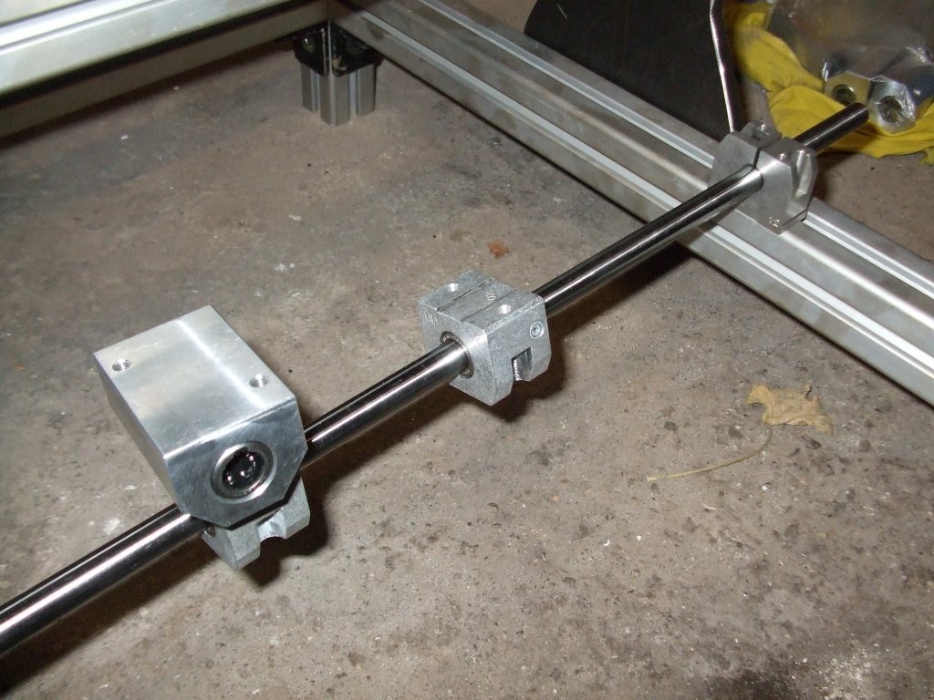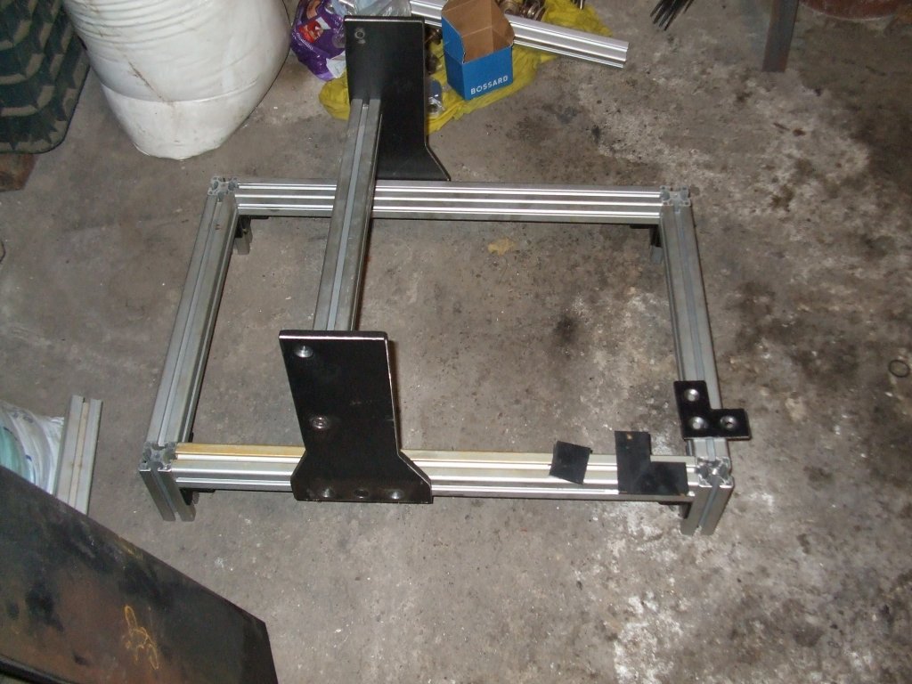Elkezdetem összerakni a mechanikát. Vegyes aluprofil+vaslemez(10mm, 4-5mm). Vettem a H.cnc fórumról trapézmenetes orsót 3db 950 mm-es, 2db kisebbet, kemény 2400Ft-ért. Itt egy pár kép. A legtöbb alkatrész saját gyártású!